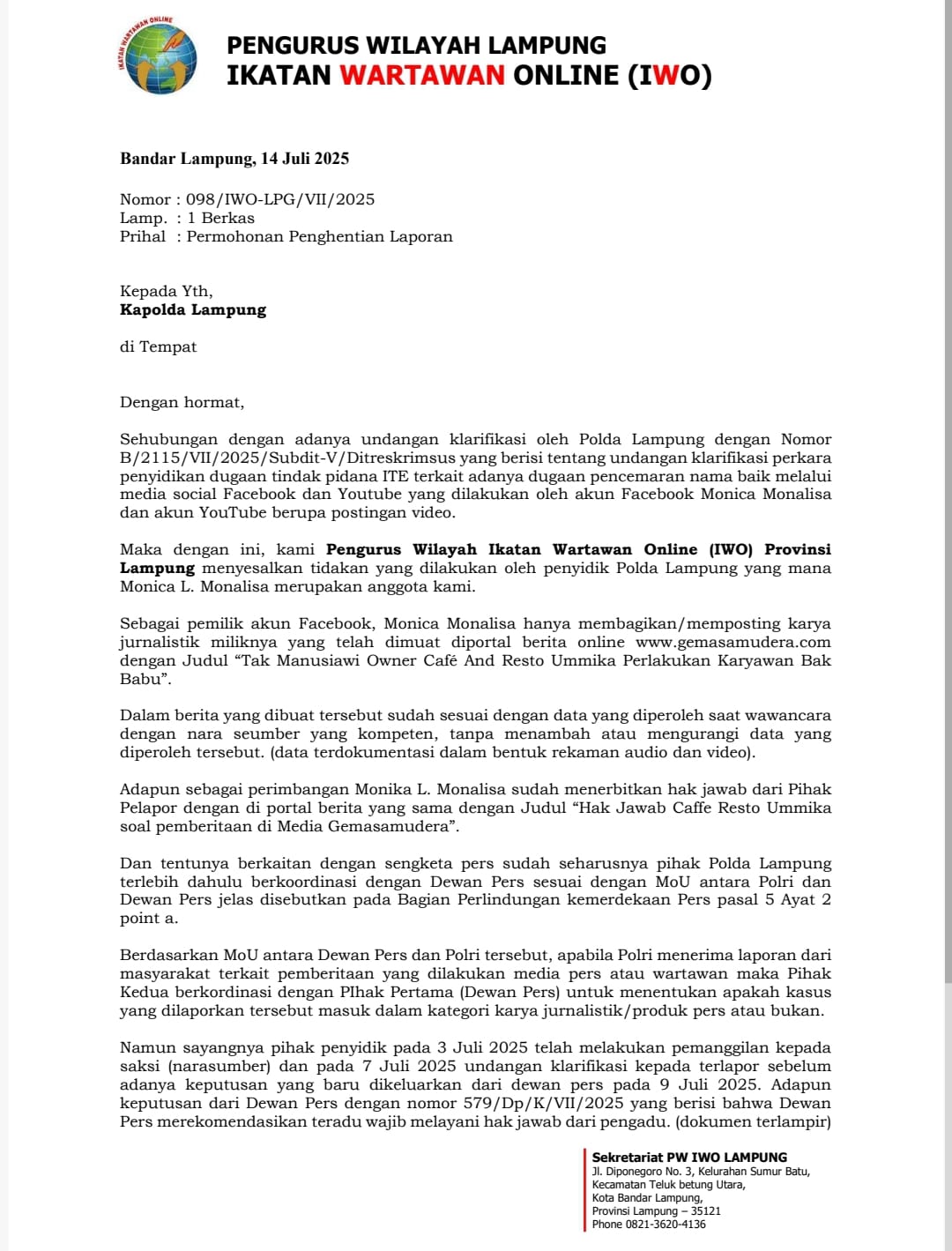 “Publik dan anggota IWO harus tahu duduk perkaranya, jangan sekadar ikut arus wacana,” ujarnya. “Berorganisasi itu bukan soal siapa yang paling vokal di grup WhatsApp, tapi siapa yang menghormati mekanisme.”