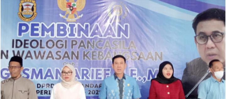 Demikian diungkapkan angggota DPRD Kota Bandarlampung, Hi. Agusman Arief, dalam acara sosialisasi Pembinaan Ideologi Pancasila dan Wawasan Kebangsaan (PIP-WK) di Kelurahan Pengajaran, Kecamatan Teluk Betung Utara (TBU).